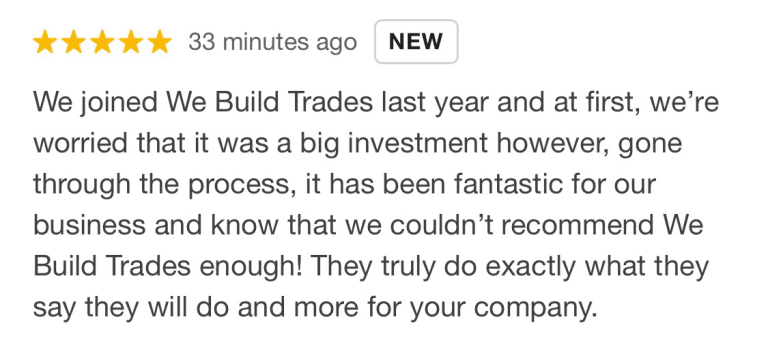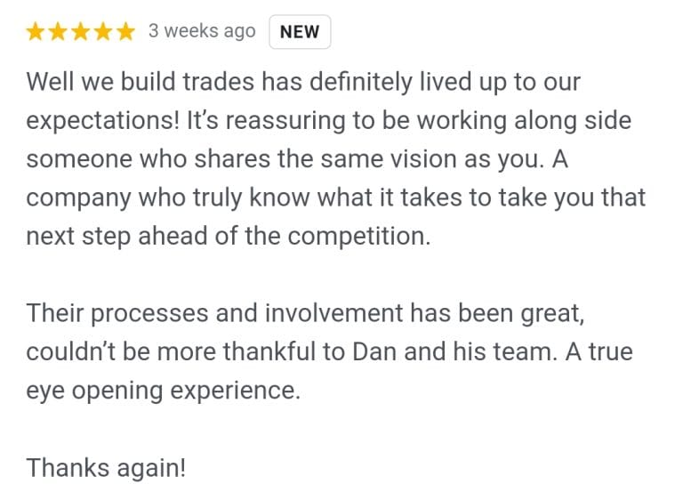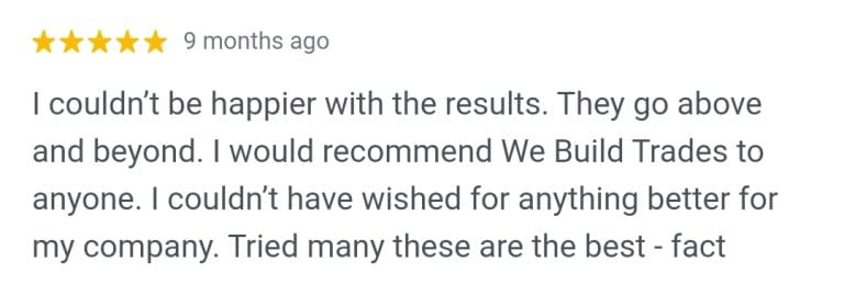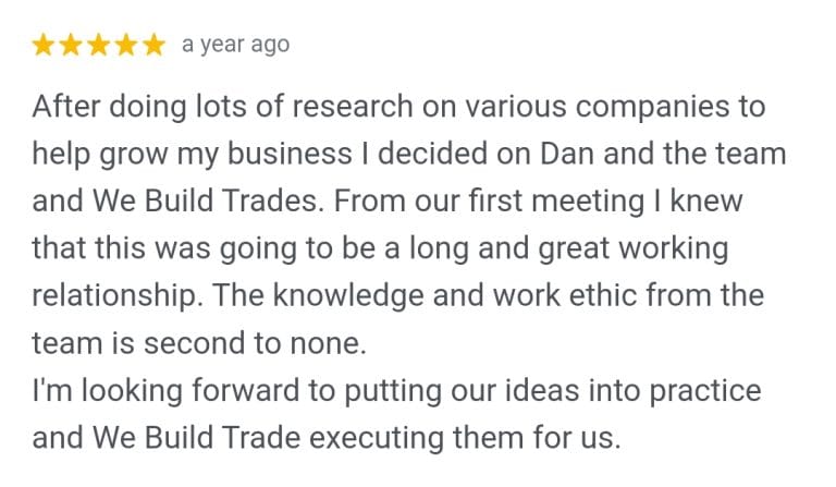 “From the first moment, my company agreed to go with We Build Trades we knew we had made the right choice. Dan was extremely knowledgeable and highly motivated in helping my business grow.